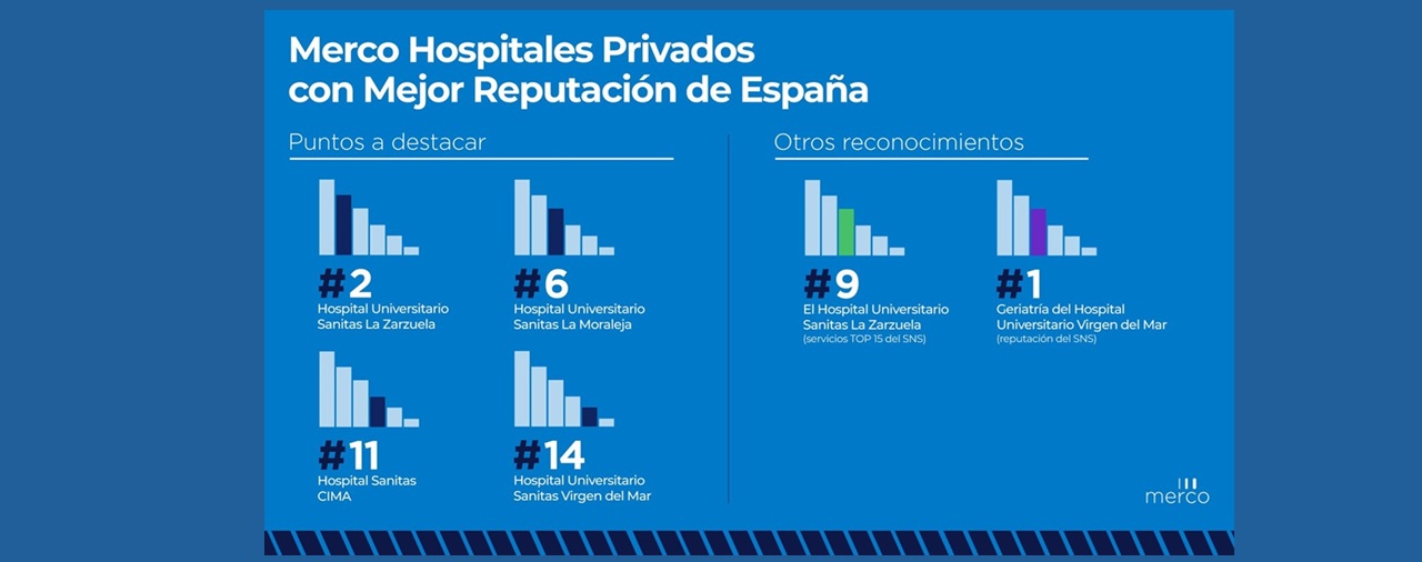 En esta clasificación destacan varios centros de Sanitas: El Hospital Universitario Sanitas La Zarzuela, que alcanza el 2º puesto; el Hospital Universitario Sanitas La Moraleja, que mantiene la 6ª posición; el Hospital Sanitas CIMA, que asciende al puesto 11, y el Hospital Universitario Sanitas Virgen del Mar, que figura en 14º lugar. Este reconocimiento refleja el compromiso de Sanitas con la excelencia, la innovación y la atención centrada en las personas.