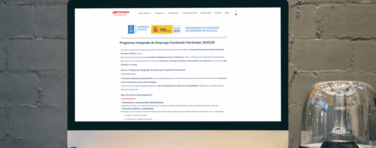 Ofrece formación práctica, habilidades sociales y servicios de conciliación para mejorar el futuro laboral. El Programa Integrado de Emprego es una iniciativa gratuita de la Fundación Nortempo que combina diferentes acciones para favorecer la inserción laboral de las personas desempleadas. El objetivo es que cada participante disponga de un plan individualizado de mejora de la empleabilidad, adaptado a su perfil, intereses y objetivos.