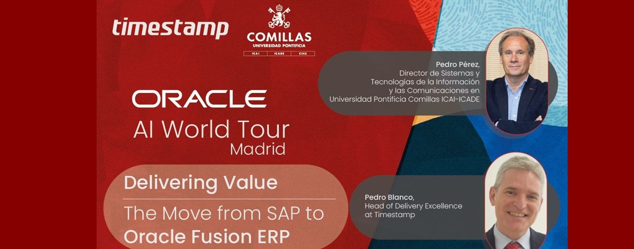 La sesión Delivering Value: The Move from SAP to Oracle Fusion ERP, estará protagonizada por Pedro Pérez Celis, director de Sistemas y Tecnologías de la Información y las Comunicaciones en la Universidad Pontificia Comillas ICAI-ICADE, y Pedro Blanco Rodríguez, Head of Delivery Excellence en Timestamp. Ambos compartirán las claves para abordar una migración de ERP con foco en los resultados reales y el valor aportado.